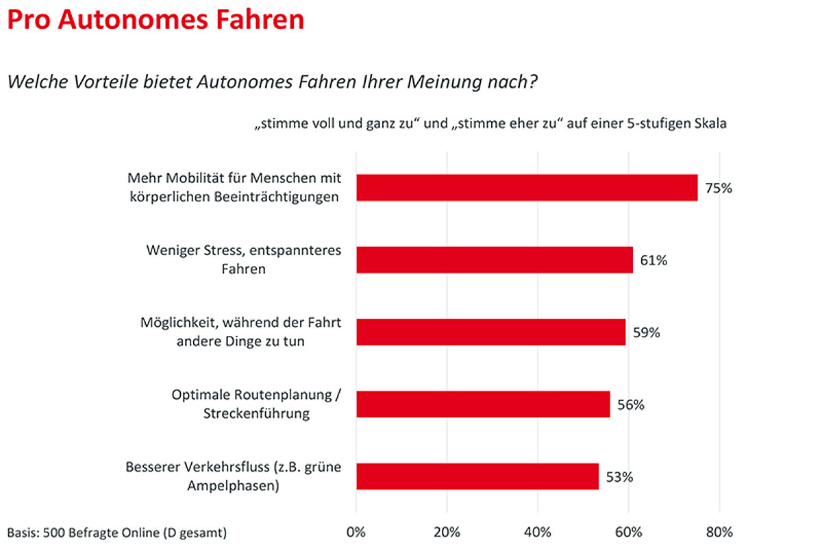 Diesen Vorteilen des autonomen Fahrens stimmten die Befragten „voll und ganz“ oder „eher“ zu: