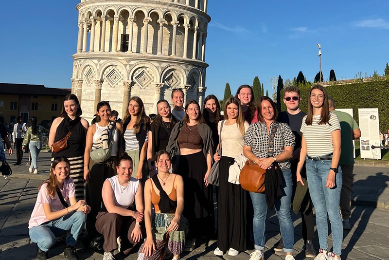 Ziel war es, die theoretischen Inhalte aus dem Unterricht mit der touristischen Realität in stark frequentierten Kulturdestinationen zu verknüpfen. Neben der fachlichen Auseinandersetzung kamen auch die kulturellen und gemeinschaftlichen Erlebnisse nicht zu kurz: Bei einem Spaziergang über die Piazza dei Miracoli in Pisa konnten die Studierenden den berühmten Schiefen Turm aus nächster Nähe erleben – und den Ansturm der Besuchermassen gleich mit wissenschaftlichem Blick einordnen. In Florenz standen unter anderem der Besuch der Uffizien, Themenführungen durch die Stadt sowie der Besuch vieler unterschiedlicher Attraktionen auf dem Programm.