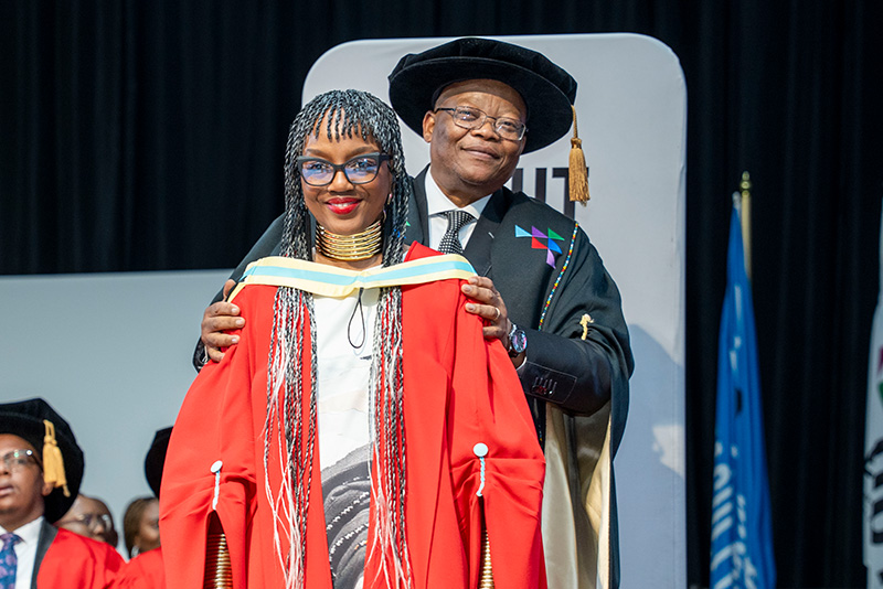 Boitumelo Pooe erhielt ihren Doktortitel in Managementwissenschaften mit Schwerpunkt Einzelhandel. Mode ist ihre Leidenschaft und ihr wissenschaftliches Thema – für die Feier ihrer Promotion entschied sie sich für ein Winnie Mandela Azania-Kleid des südafrikanischen Designers David Tlale, auf dem die Worte der verstorbenen Winnie Mandela zu lesen sind: „Wer sich uns widersetzt, dem sagen wir: Schlagt eine Frau, und ihr schlagt einen Felsen.“