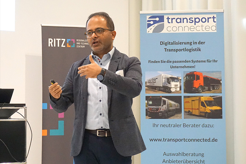 Die Key Note mit einer Einordnung von KI in der Logistik hielt Wemal Kumar, Country Director Deutschland von PNO Rental, einem traditionellen Trailervermieter aus Dänemark. Eine digitale Plattform managt dort seit acht Jahren den Einsatz der Flotte – das waren bis heute 12.000 User und 20.000 Trailer. „Wir sind alle auf der Reise“, sagt er zum Thema KI. Bei PNO sind daher alle Mitarbeiter KI-geschult. Unter der Prämisse augment people – also befähige die Menschen, mit KI Probleme zu lösen. Das passiert bereits. Aber Achtung: „Man muss auf Fehler gefasst sein und ganz einfach plug and play ist es nicht“, so Kumar.