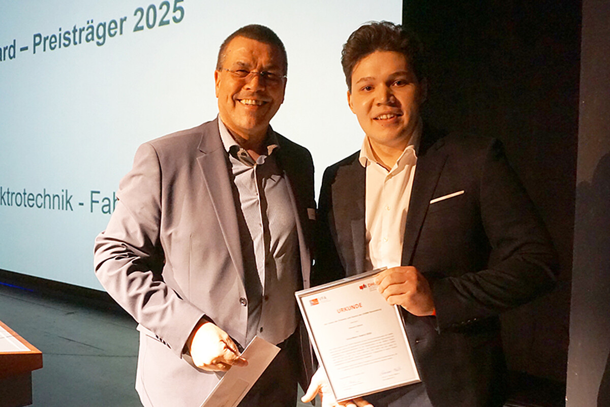 Der Förderverein der DHBW Ravensburg (VFA) verlieh dabei den Volunteers Award für besonderes Engagement auch neben dem zeitintensiven Studium. Der Preis geht an Studierende, die sich speziell für die Hochschule und das Miteinander eingesetzt haben. Über 1.000 Euro freut sich Vincent Ullrich, Studiengang Elektrotechnik. Ihm attestierten die Professoren Eigeninitiative, Ausdauer und Leidenschaft beim Aufbau einer Hochschulgruppe des Vereins Deutscher Ingenieure (VDI). Er organisierte dazu Teamabende und Exkursionen am Campus Friedrichshafen und wurde bald zum Leiter der Young Engineers des VDI Bodensee Bezirksvereins ernannt.