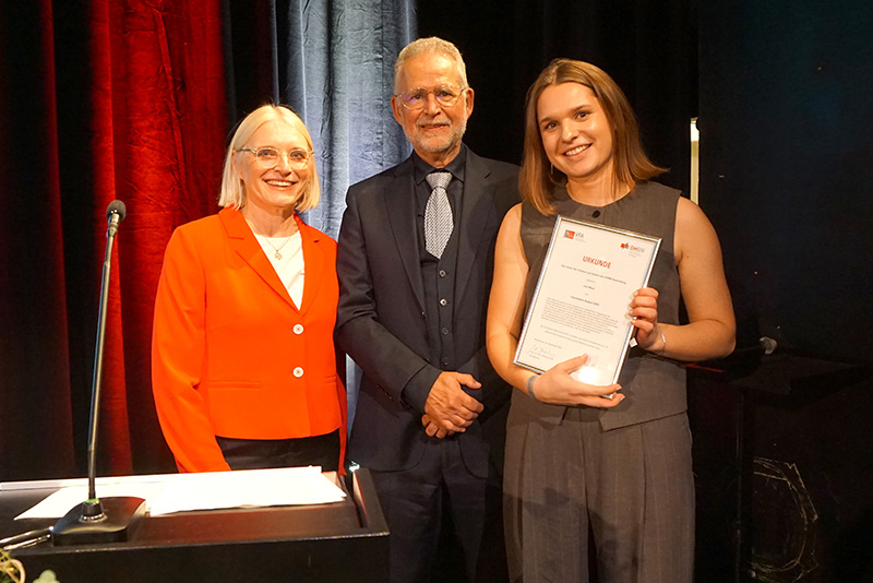 Der Volunteers Award des Fördervereins (VFA) ging in diesem Jahr an Jule Wiest. Übergeben wurde er von Prof. Dr. Roman Macha, die Laudation hielt Prof. Dr. Petra Kroflin.