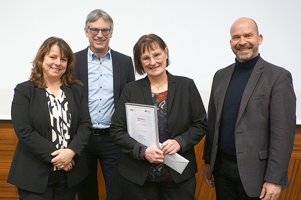 „Gute Lehre ist das Herzstück an unserer Hochschule“, brachte es Prof. Dr. Thomas Kibler in seiner Laudatio auf Prof. Dr. Susanne Schandl auf den Punkt. Die promovierte Astrophysikerin legt bei den Studierenden die Grundlagen und Vertiefungen in Mathematik, Physik und Thermodynamik. Was macht ihre Lehre so besonders? „Sie hat die Lehre nahezu perfektioniert“, gab Thomas Kibler als Antwort. „Es macht ihr Spaß, die Inhalte immer wieder neu zu entdecken und didaktisch vorbildlich aufzuarbeiten.“ Die von ihr aufgebauten Mathe-Vorkurse für die Studierenden sind „echte Highlights“ und haben schon vielen Studierenden den Einstieg ins Studium erleichtert. Dazu kommt ihre menschliche Art – schon zur ersten Vorlesung kann sie ihre Studierenden beim Namen ansprechen. „Ich hätte mir kein bessere erste Preisträgerin für den Lehrpreis vorstellen können“, so Kibler. Als lange Zeit einzige Professorin in der Technik am Campus Friedrichshafen lag ihr das Thema Gleichstellung zudem immer am Herzen.