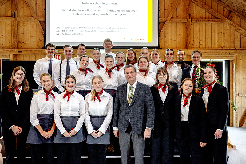Der 13. Genussgipfel 2025 stand unter dem Motto „Genuss und Expertise – Wettbewerbsvorteile am Markt“. Gastgeber in diesem Jahr war das Hopfengut No20 in Tettnang, ein duales Partnerunternehmen der DHBW Ravensburg. Auch dieses Mal waren wieder Studierende aus dem Schwerpunkt Hotel- und Gastronomiemanagement der DHBW Ravensburg gemeinsam mit Studiengangsleiter Prof. Dr. Wolfgang Fuchs dabei. Die DHBW Ravensburg ist seit Beginn Mitveranstalter des Genussgipfels.