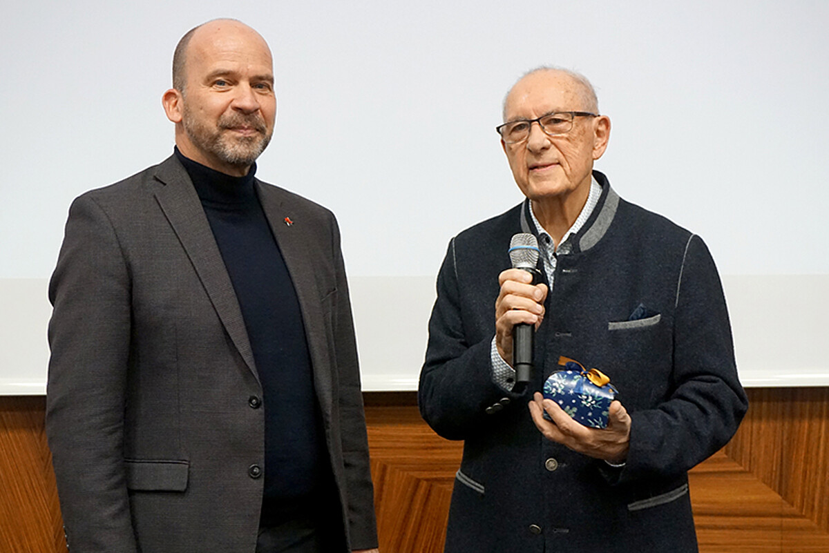 Die DHBW Ravensburg hat nun verdiente Dozent*innen geehrt, die jeweils seit mehr als 25 Jahren Vorlesungen in ihren Disziplinen halten. Sie alle sorgen durch ihre Vorlesungen und ihr Engagement mit für eine gute Lehre und den Transfer zwischen Theorie und Praxis. Eine ganz besondere Würdigung gab es dabei für Prof. Rudolf Forcher, der sage und schreibe 45 Jahre lang an der DHBW Ravensburg gelehrt hat.